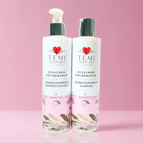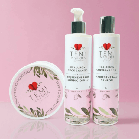 A TEMI NATURA® Hyaluron Coco&Mango Hajregeneráló termékcsalád különleges formulája gondoskodik a hajszálak belső szerkezetének helyreállításáról, növeli a rugalmasságot és visszaadja a haj természetes fényét. A termékek összetevői szinergikusan dolgoznak a selymes, könnyen kezelhető hajért – egy csomagban átfogó védelem és táplálás.